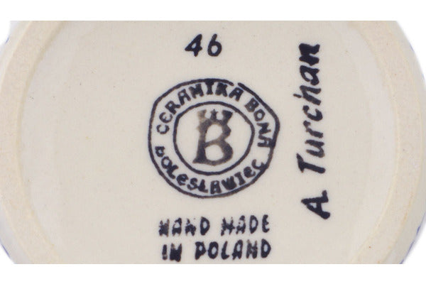 This Polish Pottery Mug is handmade and handpainted by the Ceramika Bona factory in Boleslawiec, Poland. Manufacturer item number H9800Q. It is 3¾" high and measures 4¾" by 3½". The capacity of this Mug is 13.12 oz (brimful) and it weighs 0.9 lbs. It is part of the Brown Bear Collection.