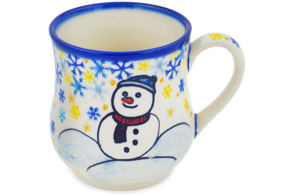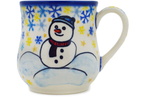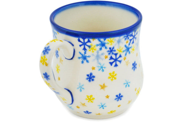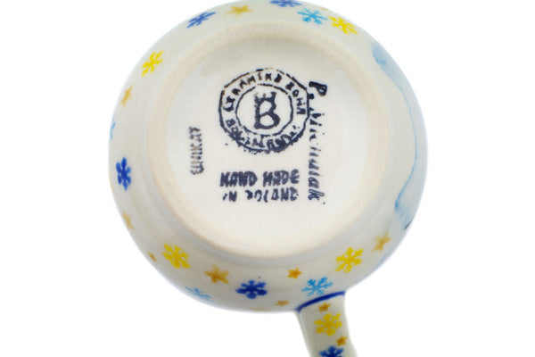 This Polish Pottery Mug is handmade and handpainted by the Ceramika Bona factory in Boleslawiec, Poland. Manufacturer item number H1410P. It is 3¾" high and measures 4½" by 3¼". The capacity of this Mug is 13.53 oz (brimful) and it weighs 0.7 lbs. It is part of the Delightful Snowfall Collection.