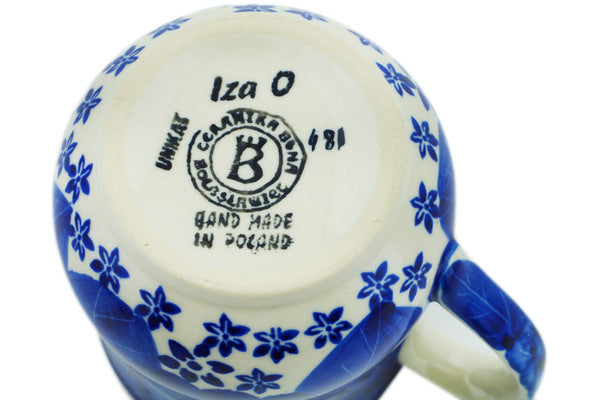 This Polish Pottery Mug is handmade and handpainted by the Ceramika Bona factory in Boleslawiec, Poland. Manufacturer item number H8968N. It is 3¾" high and measures 4½" by 3¼". The capacity of this Mug is 13.53 oz (brimful) and it weighs 0.7 lbs. It is part of the Divine Cobalt Collection.