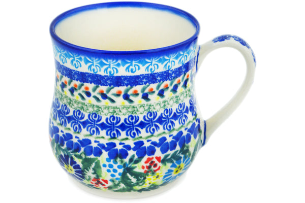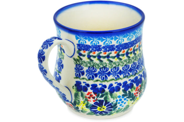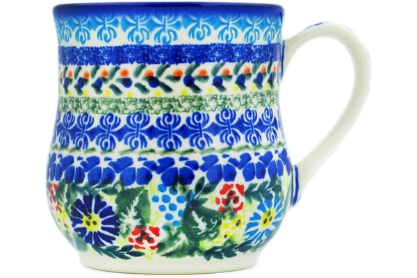 This Polish Pottery Mug is handmade and handpainted by the Ceramika Bona factory in Boleslawiec, Poland. Manufacturer item number H0027N. It is 3¾" high and measures 4½" by 3¼". The capacity of this Mug is 13.53 oz (brimful) and it weighs 0.7 lbs. It is part of the Flor-De-Lis Collection.