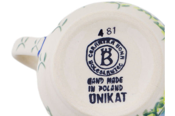 This is a Polish pottery Unikat (Signature) Mug, which means that it has been hand painted with both sponges and brushes and it is signed by the artist who painted it. Unikat pieces are the most intricate works of art. Larger Unikat items take hours of very careful work to finish.