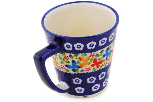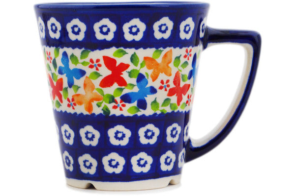 This Polish Pottery Mug is handmade and handpainted by the Zaklady Ceramiczne factory in Boleslawiec, Poland. Manufacturer item number H4532N. It is 4" high and measures 5¼" by 4". The capacity of this Mug is 12.98 oz (brimful) and it weighs 1.0 lbs. It is part of the Great Migration Collection.