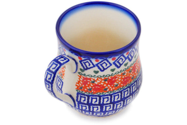 This Polish Pottery Mug is handmade and handpainted by the Ceramika Bona factory in Boleslawiec, Poland. Manufacturer item number H9701Q. It is 3¾" high and measures 4½" by 3¼". The capacity of this Mug is 13.53 oz (brimful) and it weighs 0.7 lbs. It is part of the Grecian Fire Tulips Collection.