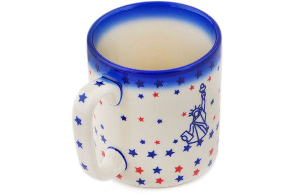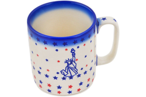 This Polish Pottery Mug is handmade and handpainted by the Ceramika Bona factory in Boleslawiec, Poland. Manufacturer item number H9942Q. It is 3¾" high and measures 4¾" by 3½". The capacity of this Mug is 13.12 oz (brimful) and it weighs 0.9 lbs. It is part of the Lady Liberty Collection.