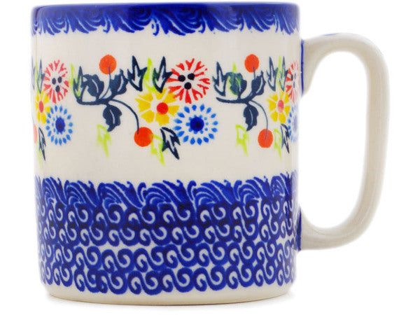 This Polish Pottery Mug is handmade and handpainted by the Ceramika Bona factory in Boleslawiec, Poland. Manufacturer item number H2252R. It is 3¾" high and measures 4¾" by 3½". The capacity of this Mug is 13.12 oz (brimful) and it weighs 0.9 lbs. It is part of the Pastel Spring Wreath Collection.