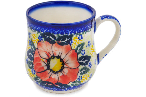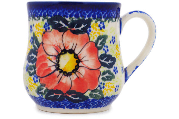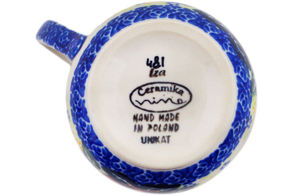 This Polish Pottery Mug is handmade and handpainted by the Ceramika Nina factory in Boleslawiec, Poland. Manufacturer item number H1471P. It is 3¾" high and measures 4½" by 3¼". The capacity of this Mug is 13.53 oz (brimful) and it weighs 0.7 lbs. It is part of the Red Daisy Delight Collection.
