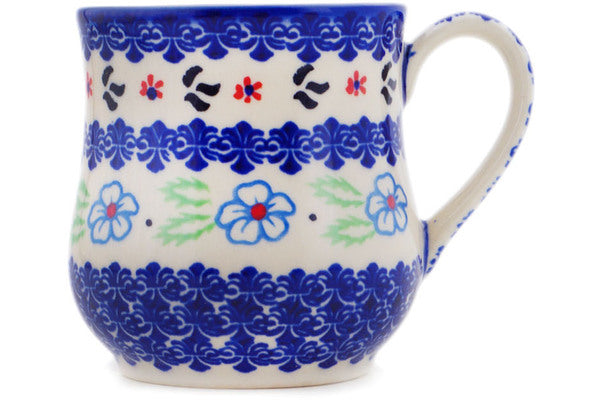 This Polish Pottery Mug is handmade and handpainted by the Ceramika Bona factory in Boleslawiec, Poland. Manufacturer item number H2160R. It is 3¾" high and measures 4½" by 3¼". The capacity of this Mug is 13.53 oz (brimful) and it weighs 0.7 lbs. It is part of the Sweet Day Collection.