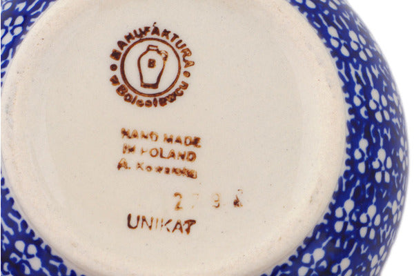 This is a Polish pottery Unikat (Signature) Tea or Coffee Pot, which means that it has been hand painted with both sponges and brushes and it is signed by the artist who painted it. Unikat pieces are the most intricate works of art. Larger Unikat items take hours of very careful work to finish.