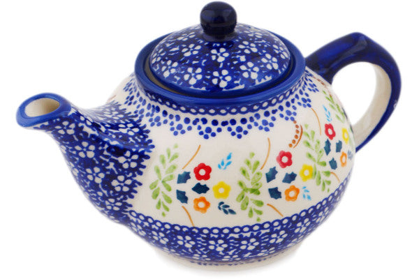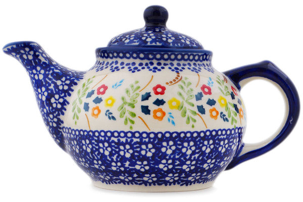 This Polish Pottery Tea or Coffee Pot is handmade and handpainted by the Manufaktura factory in Boleslawiec, Poland. Manufacturer item number H8544P. It is 4¼" high and measures 6½" by 4¼". The capacity of this Tea or Coffee Pot is 13.22 oz (brimful) and it weighs 0.7 lbs. It is part of the Rainbow Delight Collection.