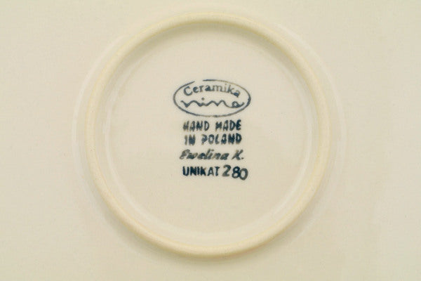 This Polish Pottery Plate is handmade and handpainted by the Ceramika Nina factory in Boleslawiec, Poland. Manufacturer item number H1820P. It is 1¼" high and measures 12¾" by 12¾". The weight of this Plate is 2.8 lbs. It is part of the Twinkle Twinkle Little Gnome Collection.