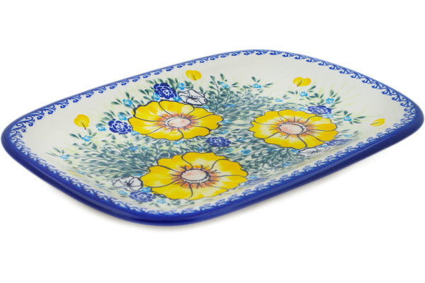 This Polish Pottery Platter is handmade and handpainted by the Ceramika Nina factory in Boleslawiec, Poland. Manufacturer item number H0345P. It is 1¼" high and measures 13½" by 9½". The weight of this Platter is 2.8 lbs. It is part of the Bright Blooms Collection.