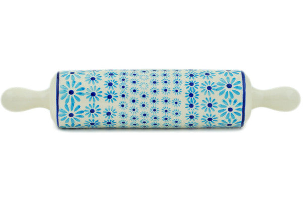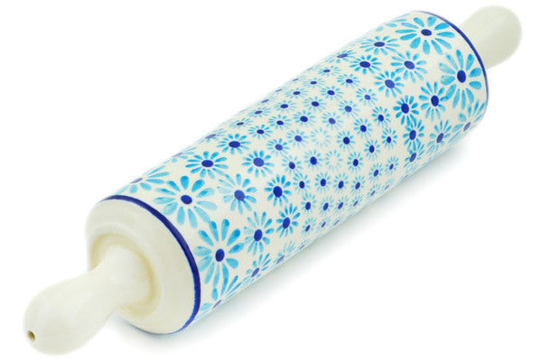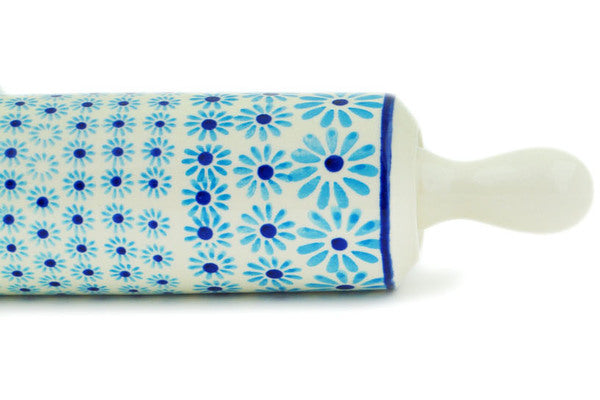 This Polish Pottery Rolling Pin is handmade and handpainted by the Zaklady Ceramiczne factory in Boleslawiec, Poland. Manufacturer item number H1954N. It is 2½" high and measures 12½" by 2½". The weight of this Rolling Pin is 1.1 lbs. It is part of the Blue Daisy Delight Collection.