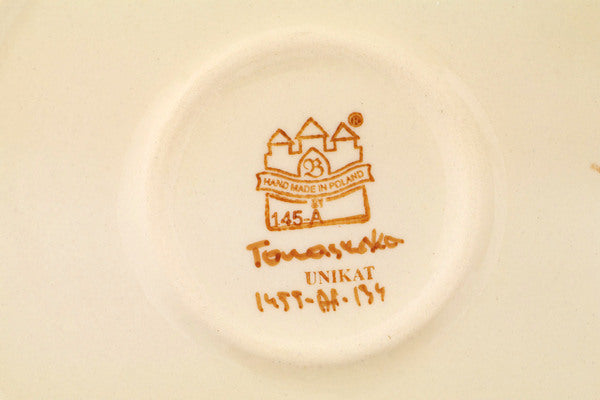 This is a Polish pottery Unikat (Signature) Round Baker with Handles, which means that it has been hand painted with both sponges and brushes and it is signed by the artist who painted it. Unikat pieces are the most intricate works of art. Larger Unikat items take hours of very careful work to finish.