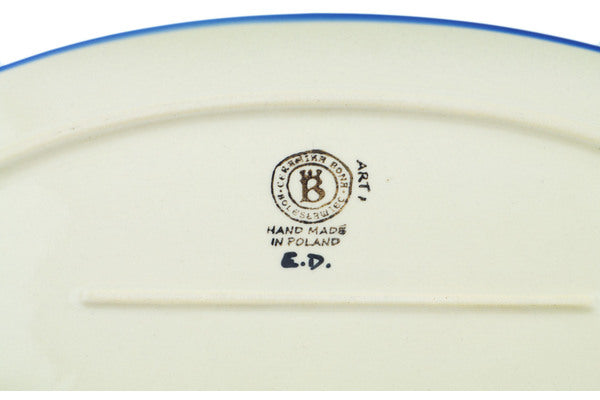 This is a Polish pottery Unikat (Signature) Oval Plate, which means that it has been hand painted with both sponges and brushes and it is signed by the artist who painted it. Unikat pieces are the most intricate works of art. Larger Unikat items take hours of very careful work to finish.