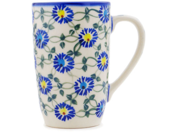 This Polish Pottery Mug is handmade and handpainted by the Ceramika Bona factory in Boleslawiec, Poland. Manufacturer item number H1851R. It is 5¼" high and measures 4¾" by 3¼". The capacity of this Mug is 14.20 oz (brimful) and it weighs 1.0 lbs. It is part of the Blue Thistle Beauty Collection.