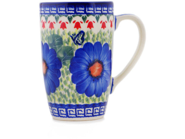 This Polish Pottery Mug is handmade and handpainted by the Ceramika Bona factory in Boleslawiec, Poland. Manufacturer item number H3556Q. It is 5¼" high and measures 4¾" by 3¼". The capacity of this Mug is 14.20 oz (brimful) and it weighs 1.0 lbs. It is part of the Brilliant Butterfly Popp Collection.
