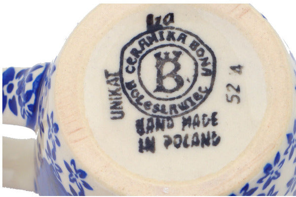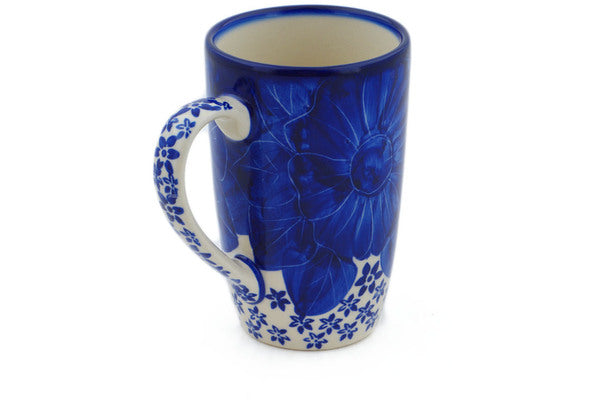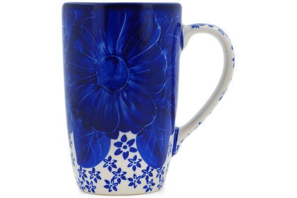 This Polish Pottery Mug is handmade and handpainted by the Ceramika Bona factory in Boleslawiec, Poland. Manufacturer item number H3685P. It is 5¼" high and measures 4¾" by 3¼". The capacity of this Mug is 14.20 oz (brimful) and it weighs 1.0 lbs. It is part of the Divine Cobalt Collection.