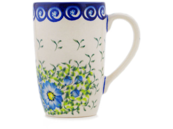 This Polish Pottery Mug is handmade and handpainted by the Ceramika Bona factory in Boleslawiec, Poland. Manufacturer item number H2107R. It is 5¼" high and measures 4¾" by 3¼". The capacity of this Mug is 14.20 oz (brimful) and it weighs 1.0 lbs. It is part of the Gorgeous Morning Glory Collection.