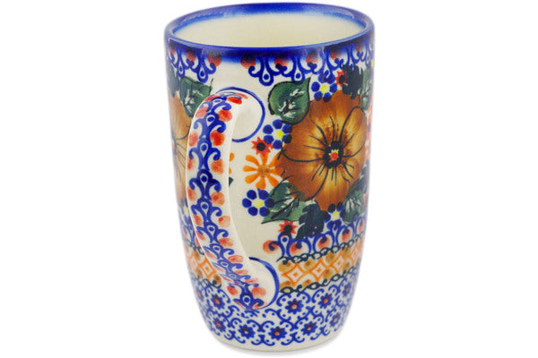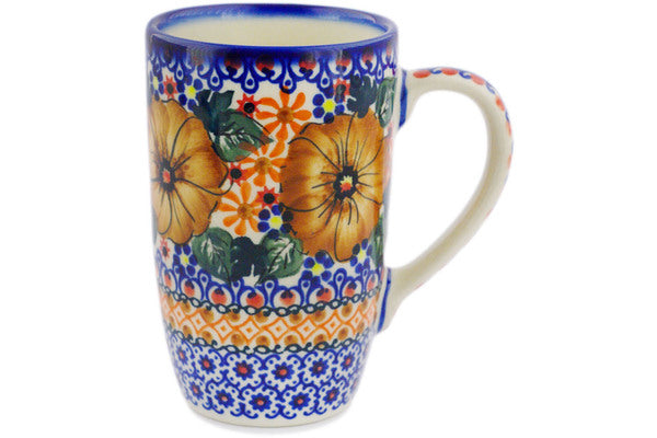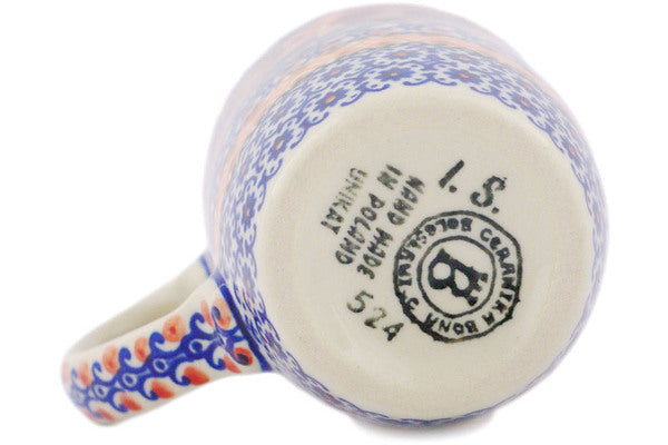 This Polish Pottery Mug is handmade and handpainted by the Ceramika Bona factory in Boleslawiec, Poland. Manufacturer item number H5712R. It is 5¼" high and measures 4¾" by 3¼". The capacity of this Mug is 14.20 oz (brimful) and it weighs 1.0 lbs. It is part of the Mauve Poppies Collection.