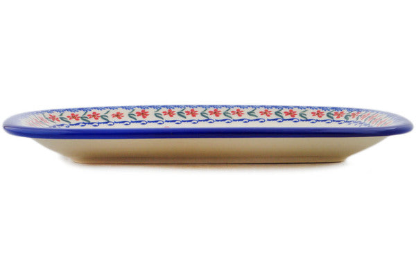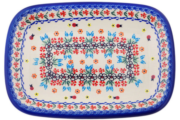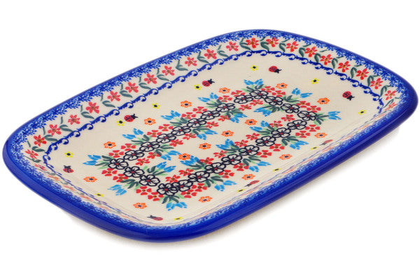 This Polish Pottery Platter is handmade and handpainted by the Ceramika Bona factory in Boleslawiec, Poland. Manufacturer item number H3899Q. It is 1¼" high and measures 13¾" by 9¾". The weight of this Platter is 2.9 lbs. It is part of the Fanciful Ladybug Collection.