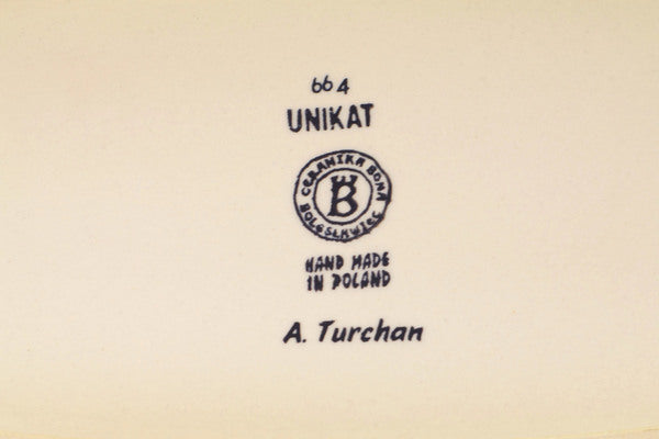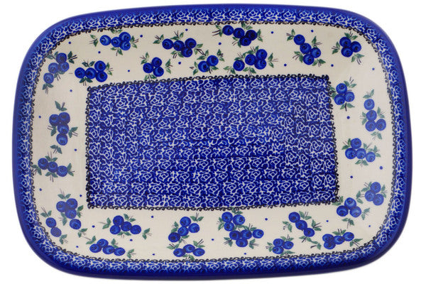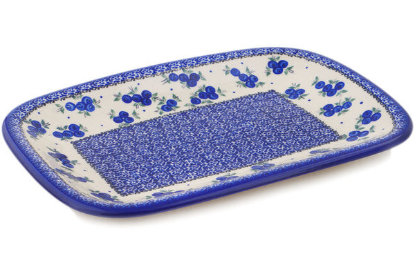 This Polish Pottery Platter is handmade and handpainted by the Ceramika Bona factory in Boleslawiec, Poland. Manufacturer item number H3028Q. It is 1¼" high and measures 13¾" by 9¾". The weight of this Platter is 2.9 lbs. It is part of the Lovely Blueberries Collection.