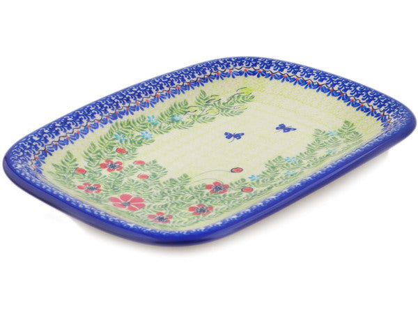 This Polish Pottery Platter is handmade and handpainted by the Ceramika Bona factory in Boleslawiec, Poland. Manufacturer item number H8768Q. It is 1¼" high and measures 13¾" by 9¾". The weight of this Platter is 2.9 lbs. It is part of the Metamorphosis Collection.
