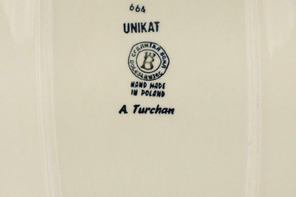 This is a Polish pottery Unikat (Signature) Platter, which means that it has been hand painted with both sponges and brushes and it is signed by the artist who painted it. Unikat pieces are the most intricate works of art. Larger Unikat items take hours of very careful work to finish.
