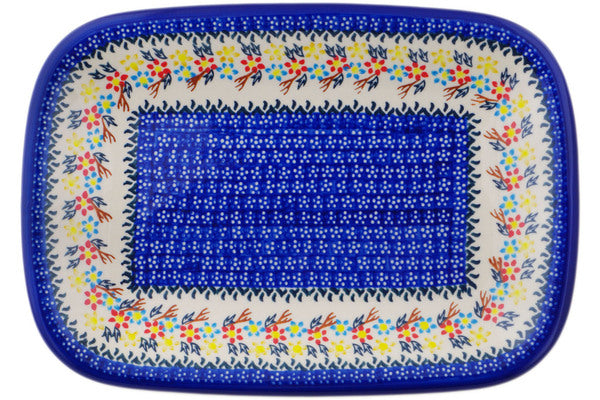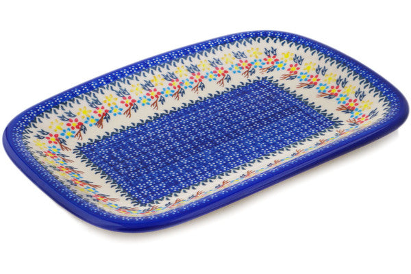 This Polish Pottery Platter is handmade and handpainted by the Ceramika Bona factory in Boleslawiec, Poland. Manufacturer item number H2000Q. It is 1¼" high and measures 13¾" by 9¾". The weight of this Platter is 2.9 lbs. It is part of the Spring Flower Ring Collection.
