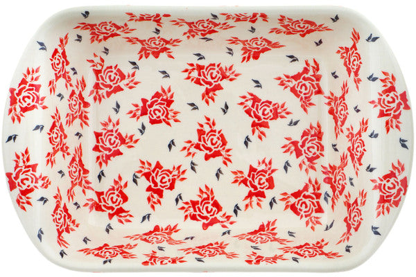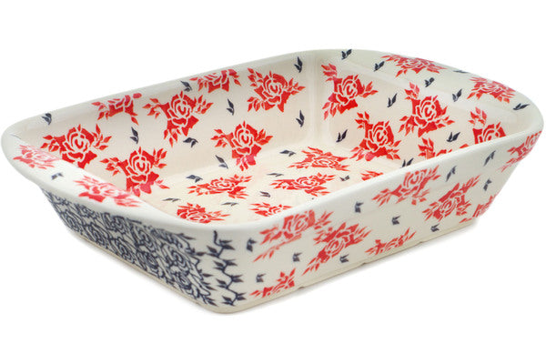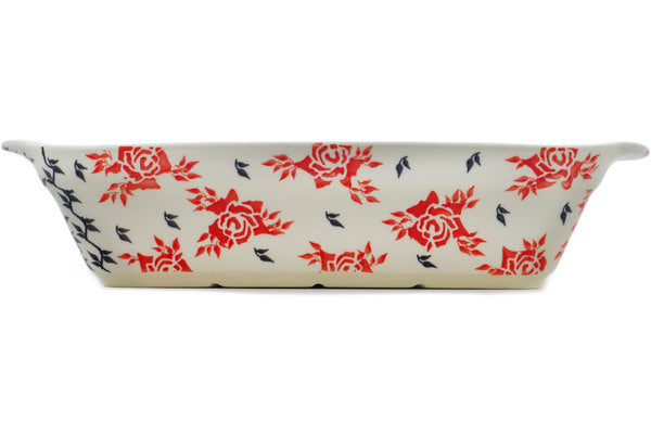 This Polish Pottery Rectangular Baker with Handles is handmade and handpainted by the Zaklady Ceramiczne factory in Boleslawiec, Poland. Manufacturer item number H9295M. It is 2¾" high and measures 14" by 9". The weight of this Rectangular Baker with Handles is 4.2 lbs. It is part of the Together Forever Collection.