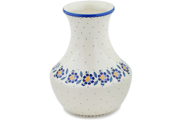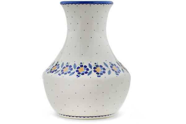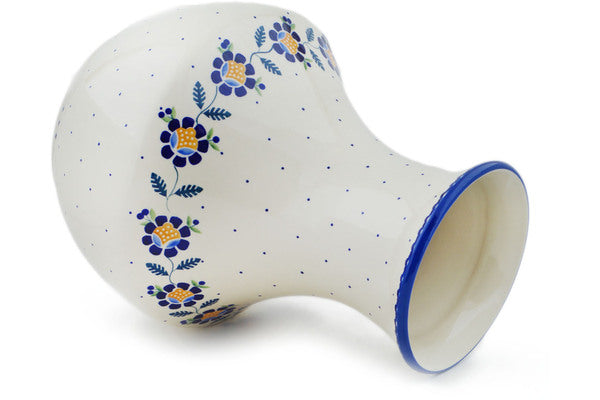 This Polish Pottery Vase is handmade and handpainted by the Manufaktura factory in Boleslawiec, Poland. Manufacturer item number H3812P. It is 14" high and measures 10" by 10". The capacity of this Vase is 310.68 oz (brimful) and it weighs 6.6 lbs. It is part of the Orange And Blue Flower Collection.