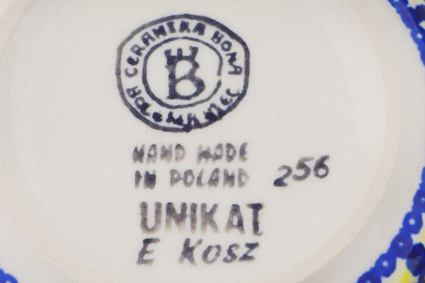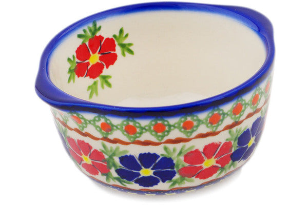 This Polish Pottery Bouillon Cup is handmade and handpainted by the Ceramika Bona factory in Boleslawiec, Poland. Manufacturer item number H1788Q. It is 2½" high and measures 5¾" by 5". The capacity of this Bouillon Cup is 15.49 oz (brimful) and it weighs 0.8 lbs. It is part of the Paradise Poppy Collection.