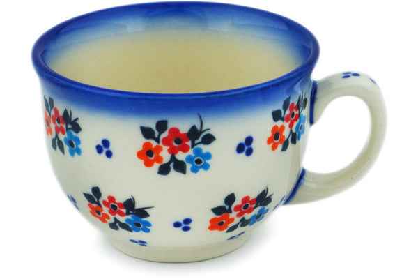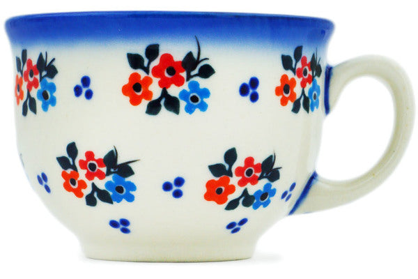 This Polish Pottery Cup is handmade and handpainted by the Cergor factory in Boleslawiec, Poland. Manufacturer item number H9265N. It is 2½" high and measures 4½" by 3¾". The capacity of this Cup is 14.68 oz (brimful) and it weighs 0.5 lbs. It is part of the Sweet Clusters Collection.