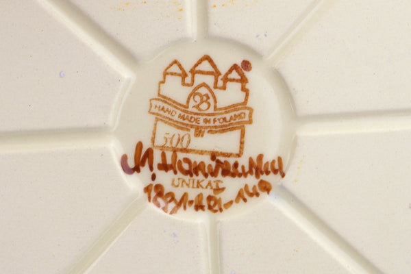 This is a Polish pottery Unikat (Signature) Pizza Plate, which means that it has been hand painted with both sponges and brushes and it is signed by the artist who painted it. Unikat pieces are the most intricate works of art. Larger Unikat items take hours of very careful work to finish.