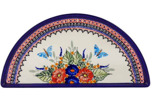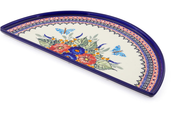 This Polish Pottery Pizza Plate is handmade and handpainted by the Zaklady Ceramiczne factory in Boleslawiec, Poland. Manufacturer item number H4504J. It is ¾" high and measures 16¼" by 8". The weight of this Pizza Plate is 2.6 lbs. It is part of the Spring Splendor Collection.
