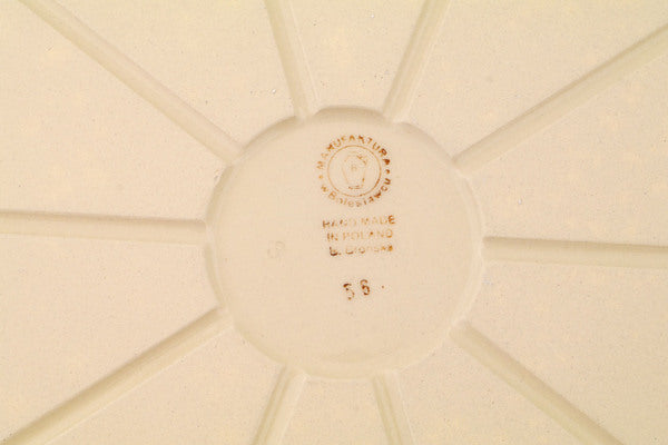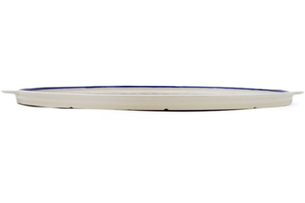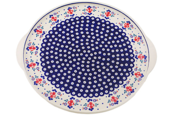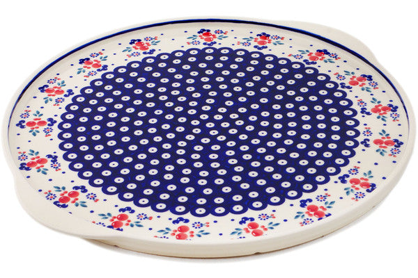 This Polish Pottery Pizza Plate is handmade and handpainted by the Manufaktura factory in Boleslawiec, Poland. Manufacturer item number H1873Q. It is ¾" high and measures 18¼" by 16¾". The weight of this Pizza Plate is 5.5 lbs. It is part of the Burst Of Berries Collection.