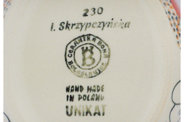 This is a Polish pottery Unikat (Signature) Gravy Boat, which means that it has been hand painted with both sponges and brushes and it is signed by the artist who painted it. Unikat pieces are the most intricate works of art. Larger Unikat items take hours of very careful work to finish.