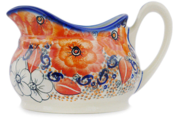 This Polish Pottery Gravy Boat is handmade and handpainted by the Ceramika Bona factory in Boleslawiec, Poland. Manufacturer item number H5896R. It is 4¼" high and measures 6¾" by 4½". The capacity of this Gravy Boat is 18.60 oz (brimful) and it weighs 1.2 lbs. It is part of the Poppy Passion Collection.
