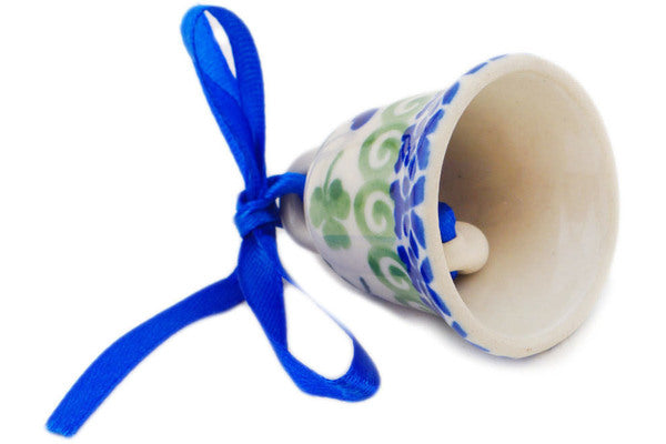 This Polish Pottery Bell Ornament is handmade and handpainted by the Ceramika Bona factory in Boleslawiec, Poland. Manufacturer item number H9695O. It is 1¾" high and measures 1½" by 1½". The weight of this Bell Ornament is 0.0 lbs. It is part of the Lucky Clovers Collection.