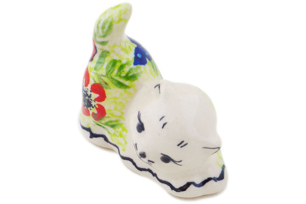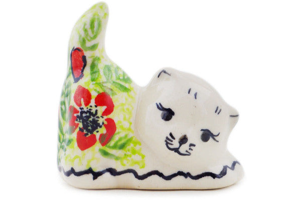 This Polish Pottery Cat Figurine is handmade and handpainted by the Ceramika Bona factory in Boleslawiec, Poland. Manufacturer item number H8799Q. It is 2½" high and measures 2½" by 1¾". The weight of this Cat Figurine is 0.0 lbs. It is part of the Metamorphosis Collection.