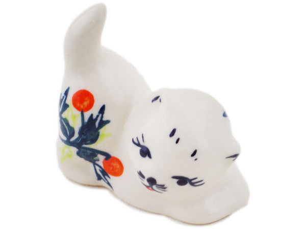 This Polish Pottery Cat Figurine is handmade and handpainted by the Ceramika Bona factory in Boleslawiec, Poland. Manufacturer item number H1924R. It is 2½" high and measures 2½" by 1¾". The weight of this Cat Figurine is 0.0 lbs. It is part of the Pastel Spring Wreath Collection.