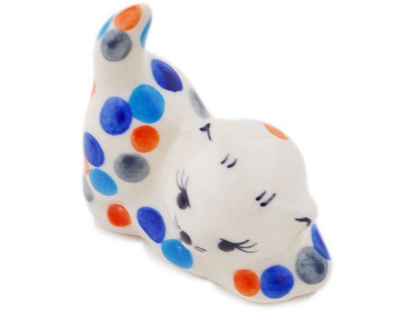This Polish Pottery Cat Figurine is handmade and handpainted by the Ceramika Bona factory in Boleslawiec, Poland. Manufacturer item number H2080R. It is 2½" high and measures 2½" by 1¾". The weight of this Cat Figurine is 0.0 lbs. It is part of the Polka Dot Frenzy Collection.