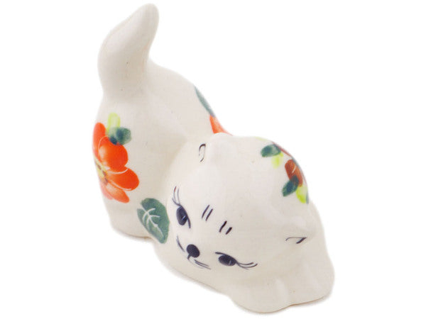This Polish Pottery Cat Figurine is handmade and handpainted by the Ceramika Bona factory in Boleslawiec, Poland. Manufacturer item number H8621P. It is 2½" high and measures 2½" by 1¾". The weight of this Cat Figurine is 0.0 lbs. It is part of the Red Blossom Collection.