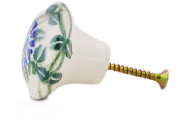 This Polish Pottery Drawer Pull Knob is handmade and handpainted by the Ceramika Bona factory in Boleslawiec, Poland. Manufacturer item number H1978R. It is 2" high and measures 1½" by 1½". The weight of this Drawer Pull Knob is 0.1 lbs. It is part of the Blue Thistle Beauty Collection.