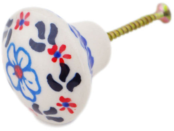 This Polish Pottery Drawer Pull Knob is handmade and handpainted by the Ceramika Bona factory in Boleslawiec, Poland. Manufacturer item number H9824Q. It is 2" high and measures 1½" by 1½". The weight of this Drawer Pull Knob is 0.1 lbs. It is part of the Sweet Day Collection.