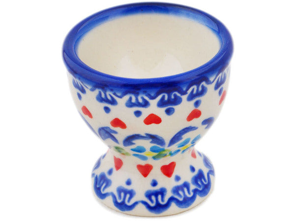 This Polish Pottery Egg Holder is handmade and handpainted by the Ceramika Bona factory in Boleslawiec, Poland. Manufacturer item number H0156Q. It is 2¼" high and measures 2¼" by 2¼". The capacity of this Egg Holder is 2.03 oz (brimful) and it weighs 0.2 lbs. It is part of the Graphic Armor Collection.