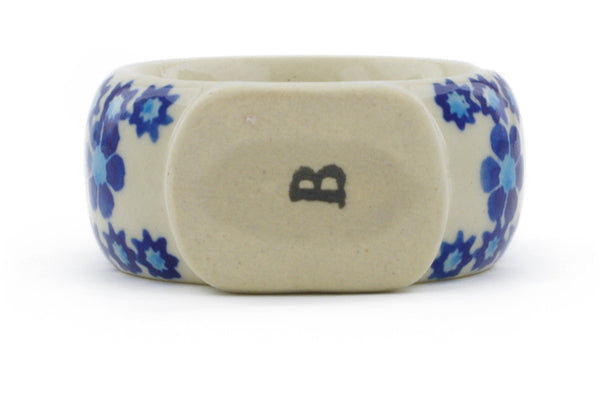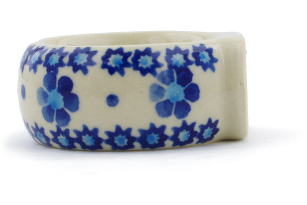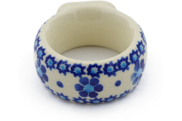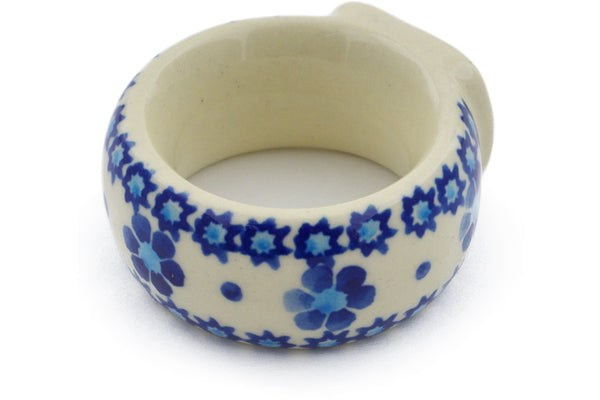 This Polish Pottery Napkin Ring is handmade and handpainted by the Ceramika Bona factory in Boleslawiec, Poland. Manufacturer item number H5033F. It is 2" high and measures 2" by 1". The weight of this Napkin Ring is 0.0 lbs. It is part of the Bleu-Belle Fleur Collection.