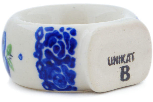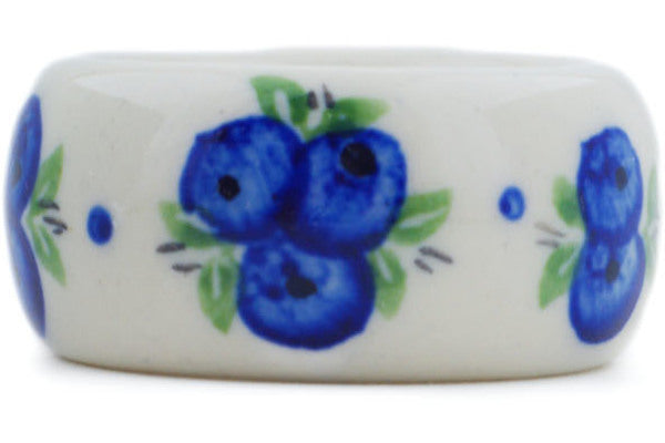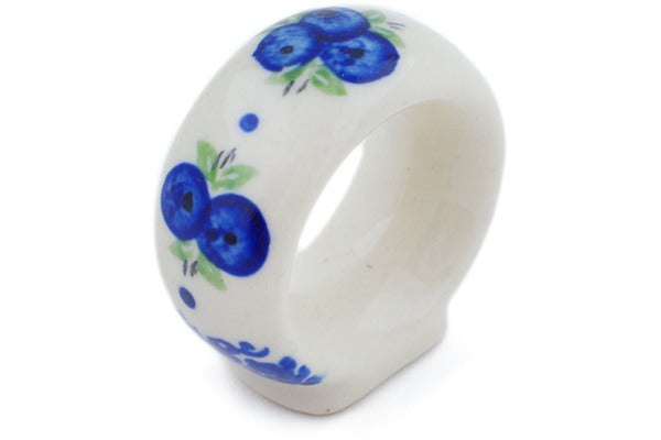 This Polish Pottery Napkin Ring is handmade and handpainted by the Ceramika Bona factory in Boleslawiec, Poland. Manufacturer item number H0839P. It is 2" high and measures 2" by 1". The weight of this Napkin Ring is 0.0 lbs. It is part of the Blueberry Dreams Collection.