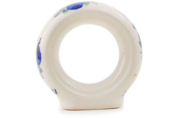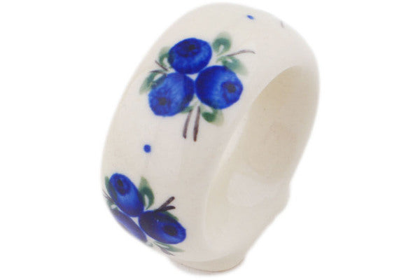 This Polish Pottery Napkin Ring is handmade and handpainted by the Ceramika Bona factory in Boleslawiec, Poland. Manufacturer item number H1121P. It is 2" high and measures 2" by 1". The weight of this Napkin Ring is 0.0 lbs. It is part of the Lovely Blueberries Collection.