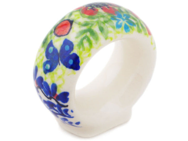 This Polish Pottery Napkin Ring is handmade and handpainted by the Ceramika Bona factory in Boleslawiec, Poland. Manufacturer item number H8800Q. It is 2" high and measures 2" by 1". The weight of this Napkin Ring is 0.0 lbs. It is part of the Metamorphosis Collection.