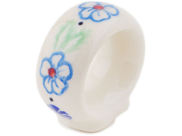 This Polish Pottery Napkin Ring is handmade and handpainted by the Ceramika Bona factory in Boleslawiec, Poland. Manufacturer item number H2019R. It is 2" high and measures 2" by 1". The weight of this Napkin Ring is 0.0 lbs. It is part of the Sweet Day Collection.